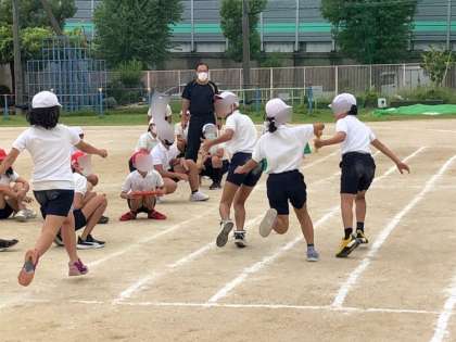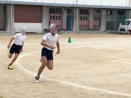 リレーの練習をしていました。練習といえどもみんなとても真剣です。