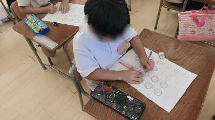 算数のテストに取り組んでいました。時計の単元でした。