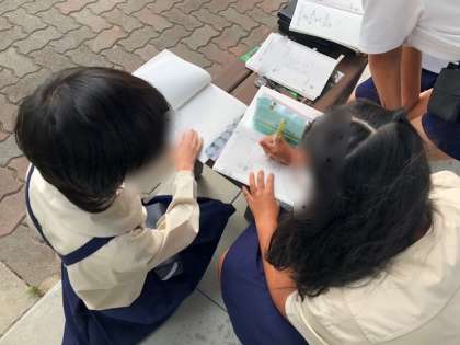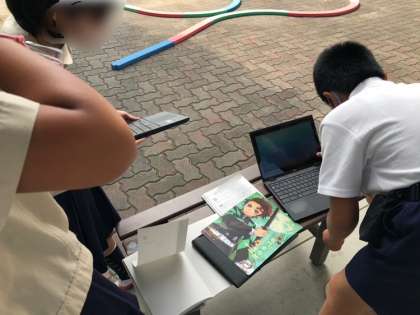 理科の学習で、雲の様子を観察して記録していました。タブレット端末も活用していました。