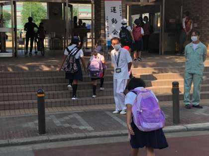 子どもたちが登校してきました。今日は目一杯楽しみましょうね。
