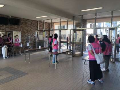 受付はPTAの方々にご協力いただいています。ありがとうございます。