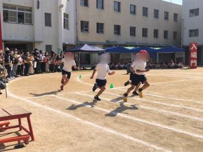 1・2年生のかけっこは、1年生が直線、2年生がトラック半周です。みんなとても頑張っていました。