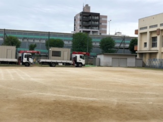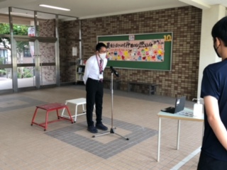 今日から約4ヶ月の予定で講堂外壁工事が始まります。講堂の周りに足場を組んでの工事です。もちろん、安全には充分配慮してもらいながら、学習活動に支障のないような工事になるよう業者や教育委員会と連携して進めます。子どもたちには、以前から伝えていましたが、今日の児童集会の最後で再度注意を促しました。しばらくの間、ご理解とご協力をお願いいたします。