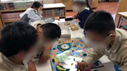 上段はボードゲームクラブ、下段は屋外スポーツクラブの様子です。