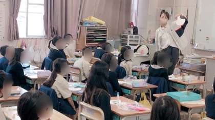 図工の学習で、色画用紙を使って顔を作っていました。髪の毛や耳の形など細かいところも丁寧に作っていました。