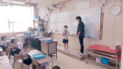 足し算の計算の仕方について、それぞれ前に出て自分の考えを発表していました。