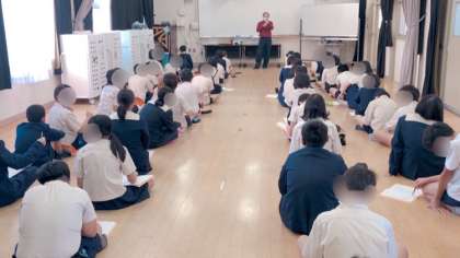 1・2組合同で来週に迫ってきた修学旅行の説明会をしていました。安全に旅行ができるよう、しっかり説明を聞いていました。