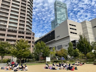 昼食タイムに入りました。とっても天気がいいです、ハルカスがより高く見えます。