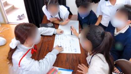 班でまとめたことをペッパーくんを通して春日出小の友だちと交流します。その原稿やプレゼン資料などを同志社女子大のお姉さんにアドバイスをもらいながら作成しています。