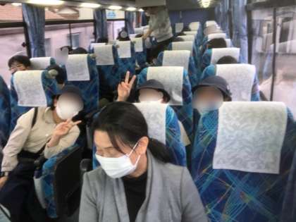 車内の様子です。ビデオを観ながら静かに過ごしています。