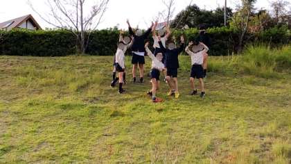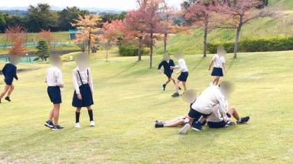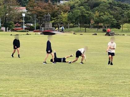 瓦粘土陶芸作品を作り終えた子から近くの広場で遊びました。