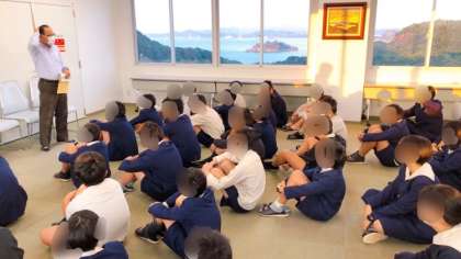 おはようございます。10月28日(金)、修学旅行2日目が始まりました。昨夜は、子どもたち早く寝たようで、体調不良の子もいませんでした。爽やかな顔で朝の集いを行いました。天気も上々です。