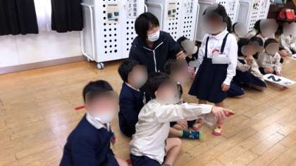 英語の学習です。ハロウィンのカード合わせ遊びをしながら英語の単語に親しんでいました。とっても楽しそうでした。