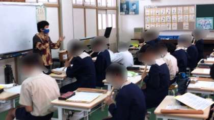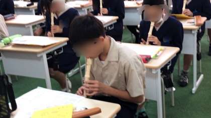 音楽の学習です。リコーダーで「カントリーロード」を練習していました。