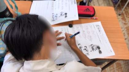 漢字プリントのやり直しをして、先生に確認してもらってました。来週、テストがあるそうです。