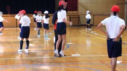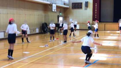 体育館で縄跳びの学習をしていました。めいめいが自分の挑戦する技の練習に励んでいました。