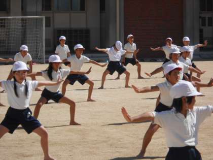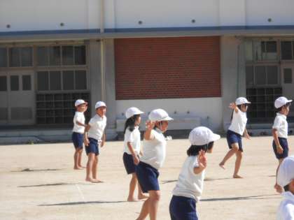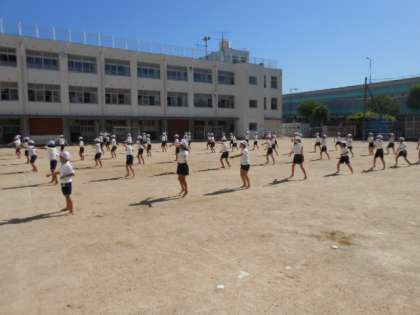 中学年がはじめて運動場練習を行いました。今日は雲1つない台風一過の青空です。先生の指導も気合が入っています。子どもたちの表情も真剣でした。