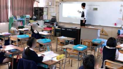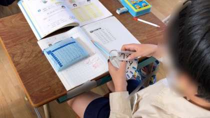 算数の学習です。九九の7の段をスラスラ言えるよう練習していました。九九カードを使っている子もいました。