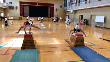 2年生の様子です。跳び箱練習グループと縄跳び練習グループとに分けて活動していました。