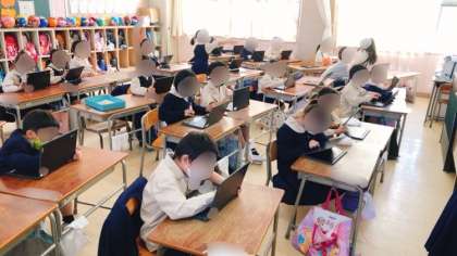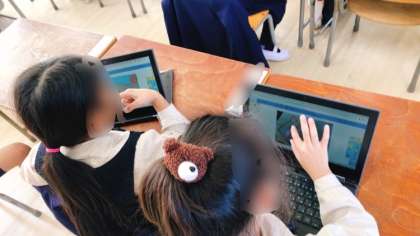 タブレット端末上で棒を使った形作りをしていました。できた形に目などをつけて動物にしたりカラフルな色を塗ったりしていました。