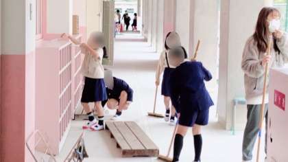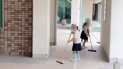 今日もみんなで清掃活動しています。きれいな学校で気持ちよく生活できるよう、日々頑張っています。
