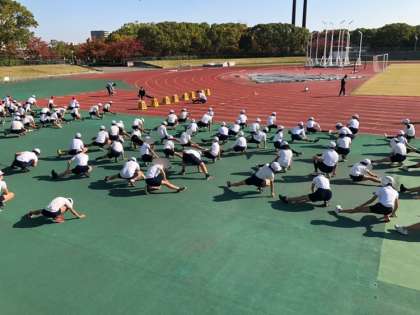交流会が始まりました。準備運動して、いよいよ競技開始です。