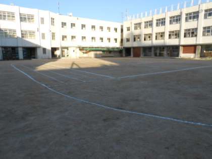 今日は運動場にラインを引きました。また入退場門にも文字が美しく入りました。