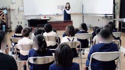 1・2組合同で、読み聞かせグループぽかぽかさんの絵本読み聞かせを静かに聴きました。