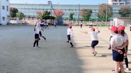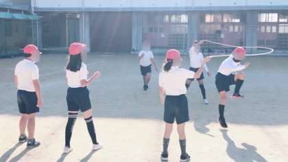 体育で大縄跳びをしていました。グループで何人連続で跳べるかに挑戦していました。