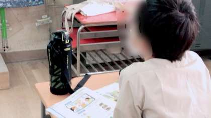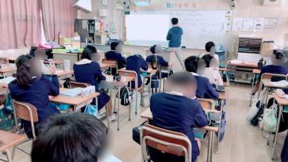 英語の学習です。テープの会話をよく聞いて問題に答えます。