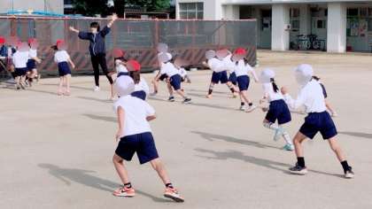 体育の学習です。「だるまさんがころんだ」をみんなで楽しんでいました。上手く静止出来ずにつんのめってこけかけている子もいましたが、みんなとても楽しそうでした。