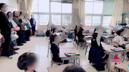 午後からは、学習参観です。今日は1〜3年生の日です。たくさんお越しいただき、ありがとうございます。上段は1年生、下段は3年生の様子です。