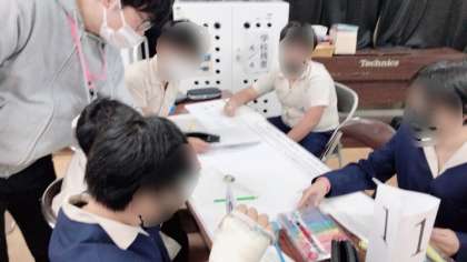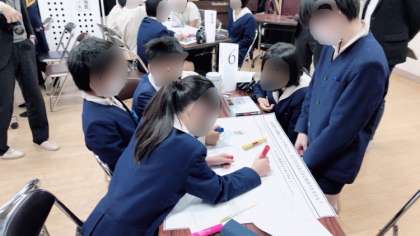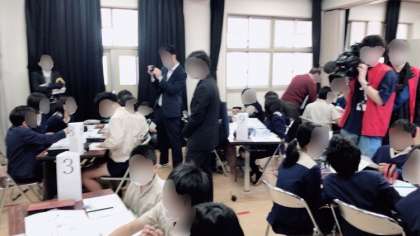 いろいろなアイディアを出し合って、各グループでまとめて一つの案にしました。この出前授業には、複数の報道機関が取材に来てました。