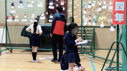 作品展鑑賞の時間でした。じっくりと作品を見てうなづいている子がいました。