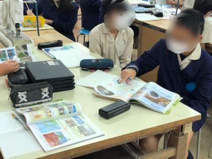 理科の学習です。地層の学習から発展させて地震について学習していました。