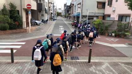 3年生が社会見学に出発しました。天神橋筋にある「大阪暮らしの今昔館」の見学がメインです。気をつけて行ってらっしゃいね!