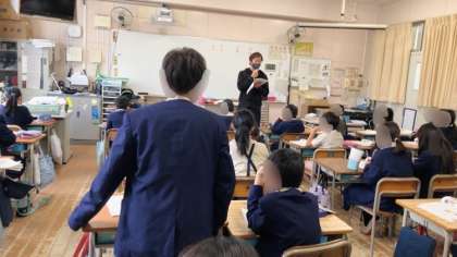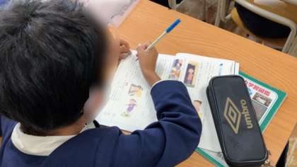 国語の学習で、「から」や「ので」、「けれど」など文と文をつなぐ言葉を調べていました。