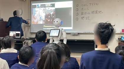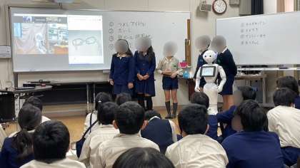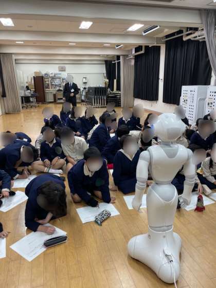 今日は、ゴミ問題についてしらべたことを春日出小の5年生の皆さんと発表交流会をしました。ペッパーさんを活用して互いの学校にいなからのオンラインでの発表交流会です。同志社女子大の先生に支援いただきながらの学習です。