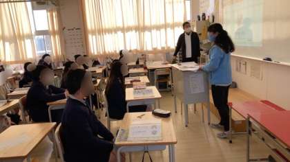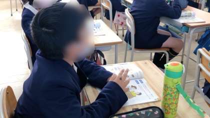 英語の学習です。デジタル教科書の動画に合わせて単語の発音の練習をしています。