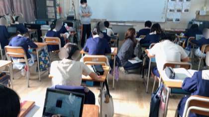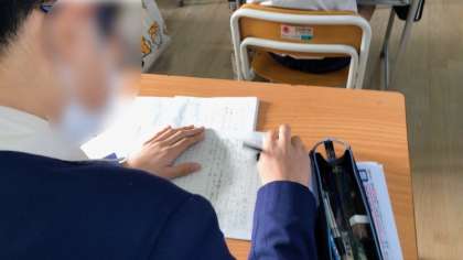 卒業文集に取り組んでいます。楽しかった思い出をたどって書いた下書きを原稿用紙に写しています。