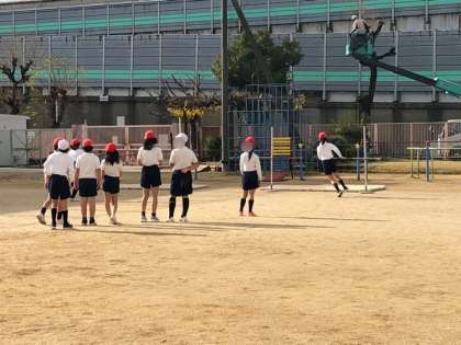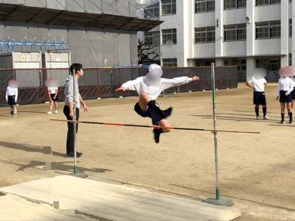 5年生の様子です。体育の学習で、走り高跳びの練習をしていました。