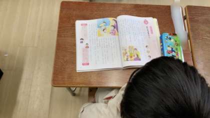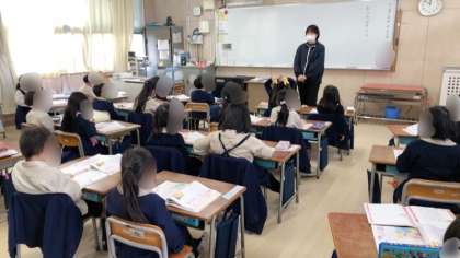 1年生の様子です。静かに前を向いて先生のお話をきいていました。