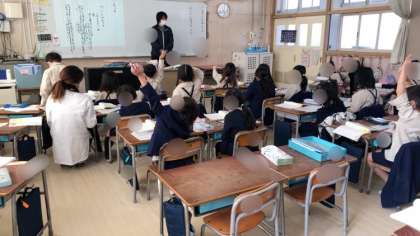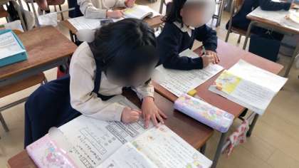 国語の学習です。物語文の読み取りにワークシートを使っていました。主人公のしたことや考えなどをワークシートに書き込みながら、物語文の内容をまとめていました。