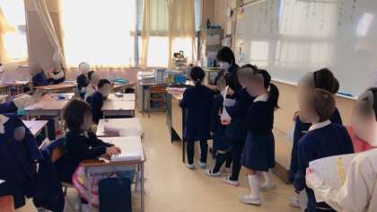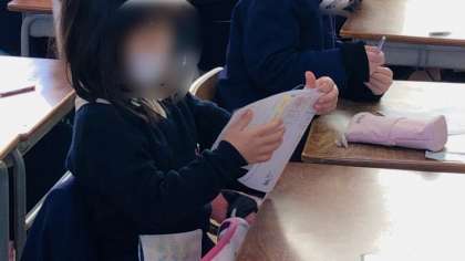 国語のプリントの整理をしていました。やり直しを先生に見てもらってからしまっていました。