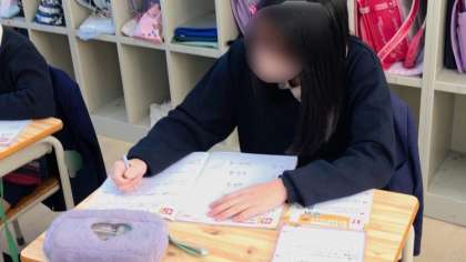 算数の学習で、分数の足し算や引き算に取り組んでいました。先生の説明をしっかり聞いた後、ワークシートの問題に取り組んでいました。