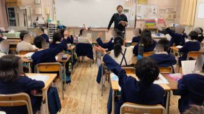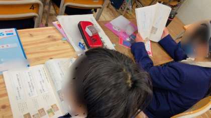 国語の時間でした。百人一首の話を聞いていましたが、百人一首を知らない子たちが結構いることに少し驚きました。