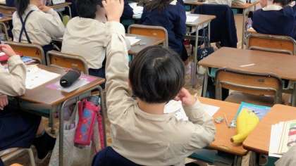 算数の学習で、グラフの見方を学んでいます。たくさんの子が、積極的に挙手して意見を述べようと頑張っています。
