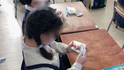 算数の学習で、計算カードを使って引き算の練習をしていました。