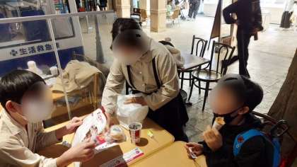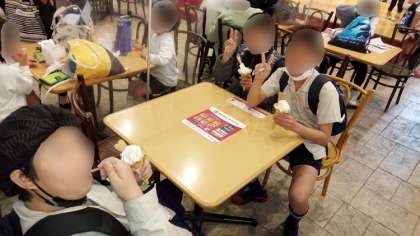6年生もそれぞれの活動場所でお昼ご飯を食べています。