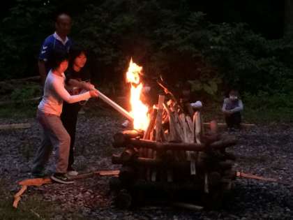 まずは、トーチで火をつけて・・。炎が高く舞い上がります。